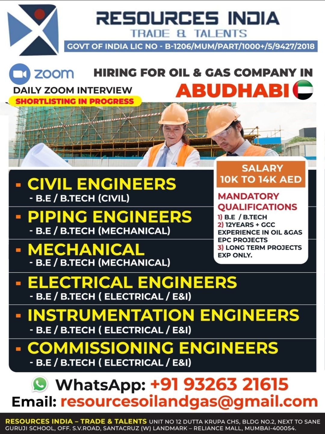 Candidates with oil and gas plant shutdown experience should apply immediately with their latest CV and passport copies. This is a free recruitment drive with no charges from candidates.