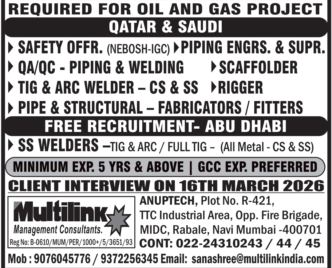 This Abu Dhabi offshore shutdown project offers excellent benefits for skilled and semi-skilled professionals. Don’t miss this opportunity to work on a major ADNOC project with free recruitment and full support from Ajeets Management & Manpower Consultancy.