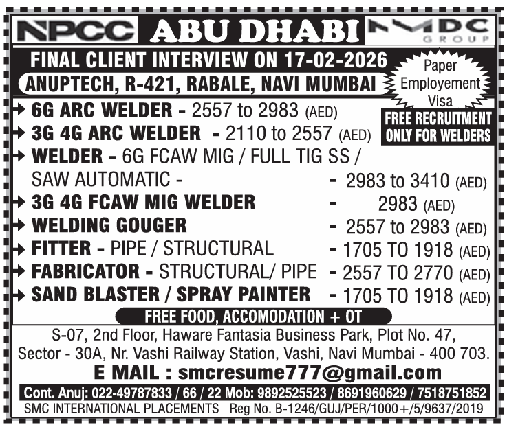 Free Recruitment Saudi Arabia: Saipem Baroda Interview by Aryaa International