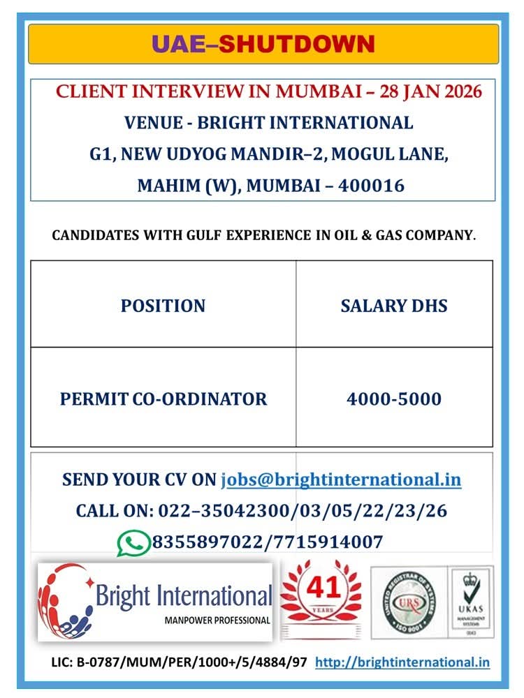 UAE Shutdown Job Vacancy: Urgent Hiring for Permit Coordinators by Bright International