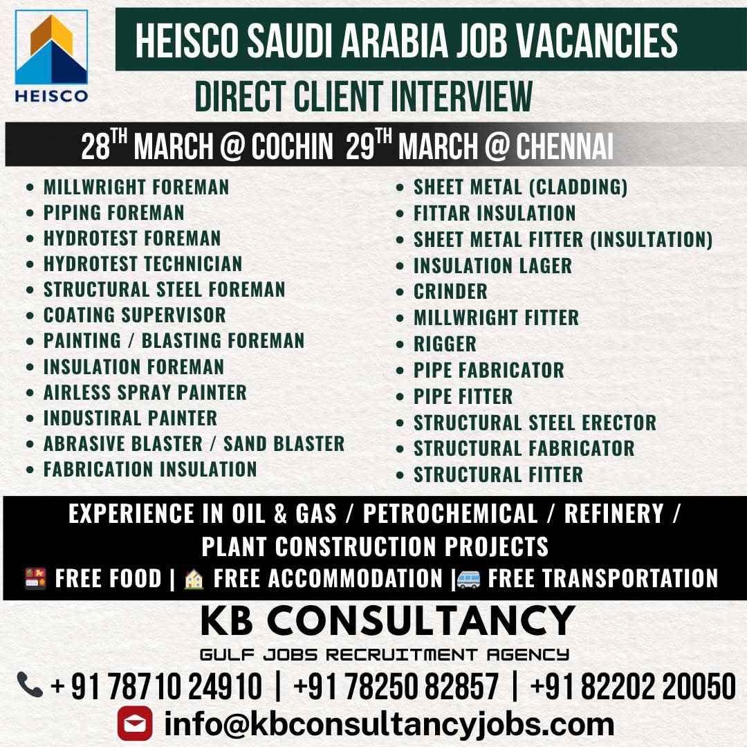 This shipyard project offers immediate departure with employment visa, free food and accommodation plus transportation provided by the company. Minimum 2-5 years experience in shipyard, marine, oil and gas, or steel industries is required. Indian experience is accepted, making this an ideal opportunity for skilled professionals.