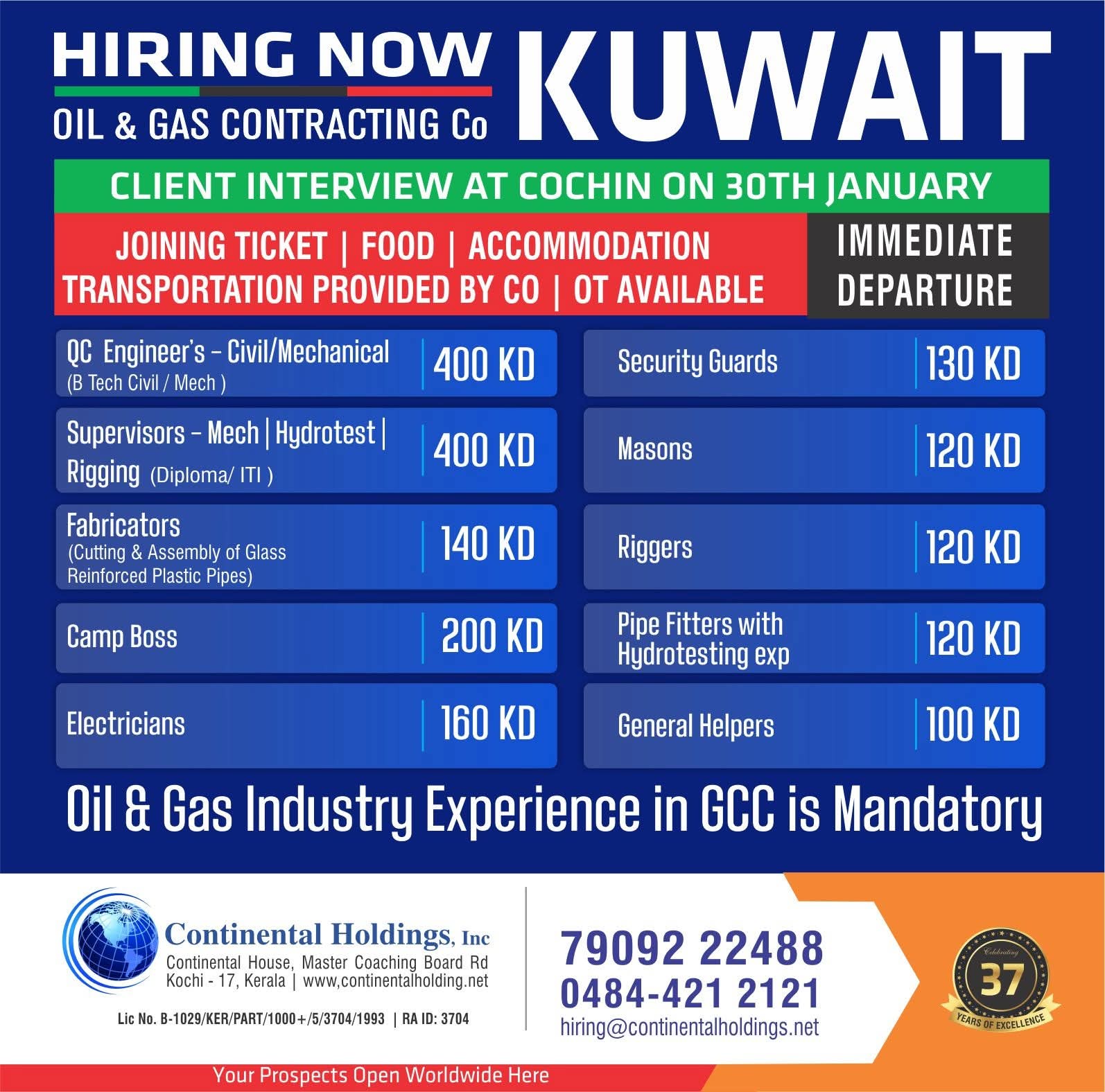 Kuwait Job Vacancy: Urgent Hiring for Oil & Gas Project in Cochin See Job Detail & Apply January 22, 2026 2 Comments