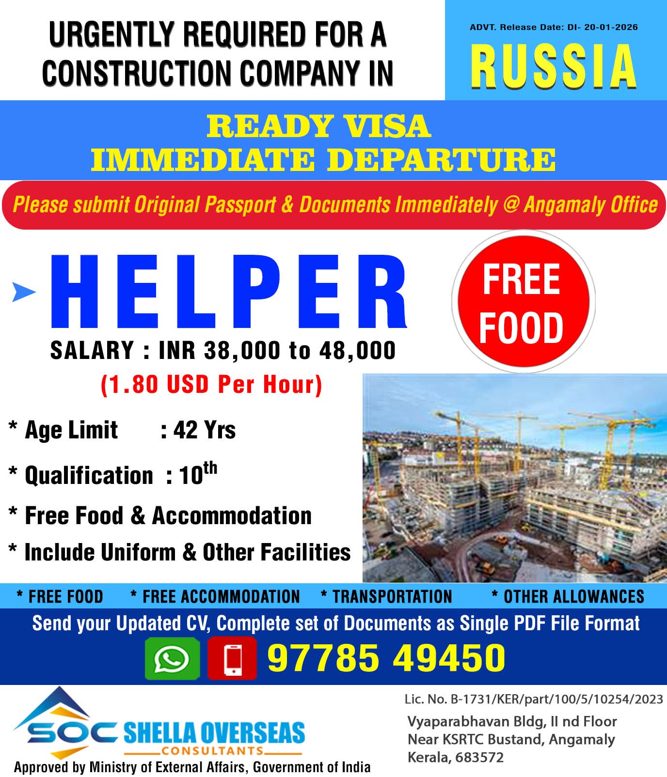 Jobs in Russia Urgent Hiring for Construction Helpers with Ready Visa See Job Detail & Apply January 23, 2026 3 Comments