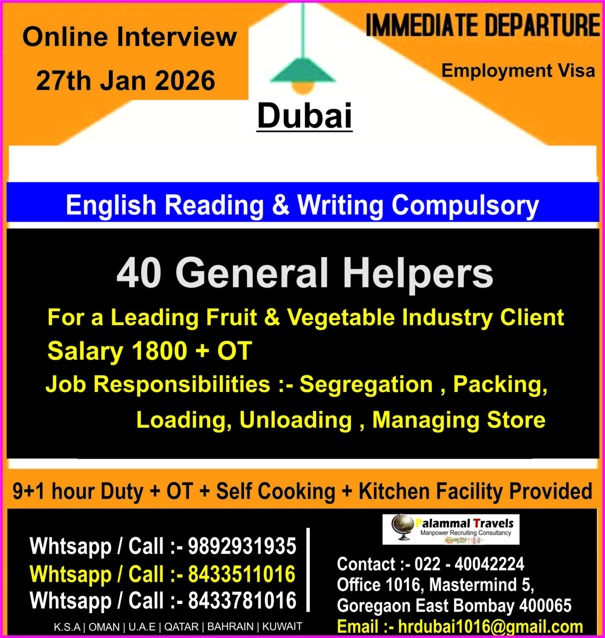 I am interested in General Helper job for Dubai.