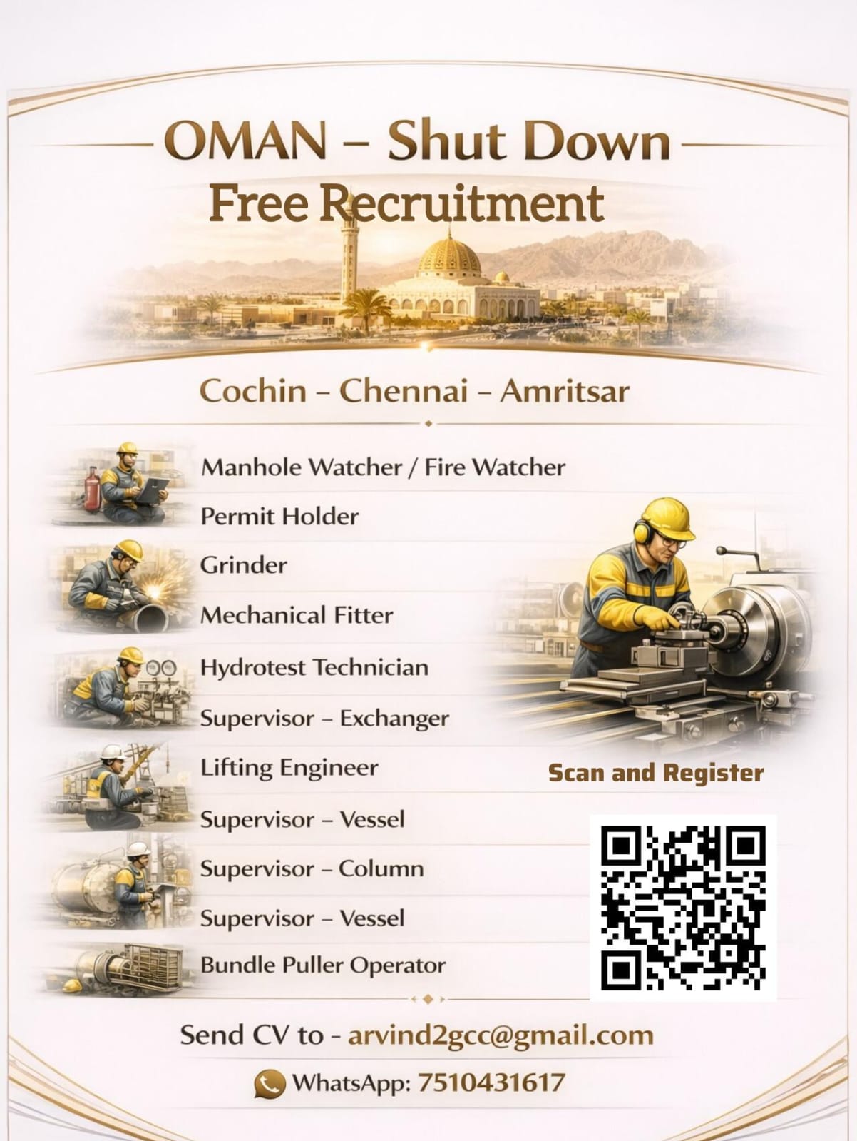 Hiring for Oil & Gas Project at SAUDI ARABIA