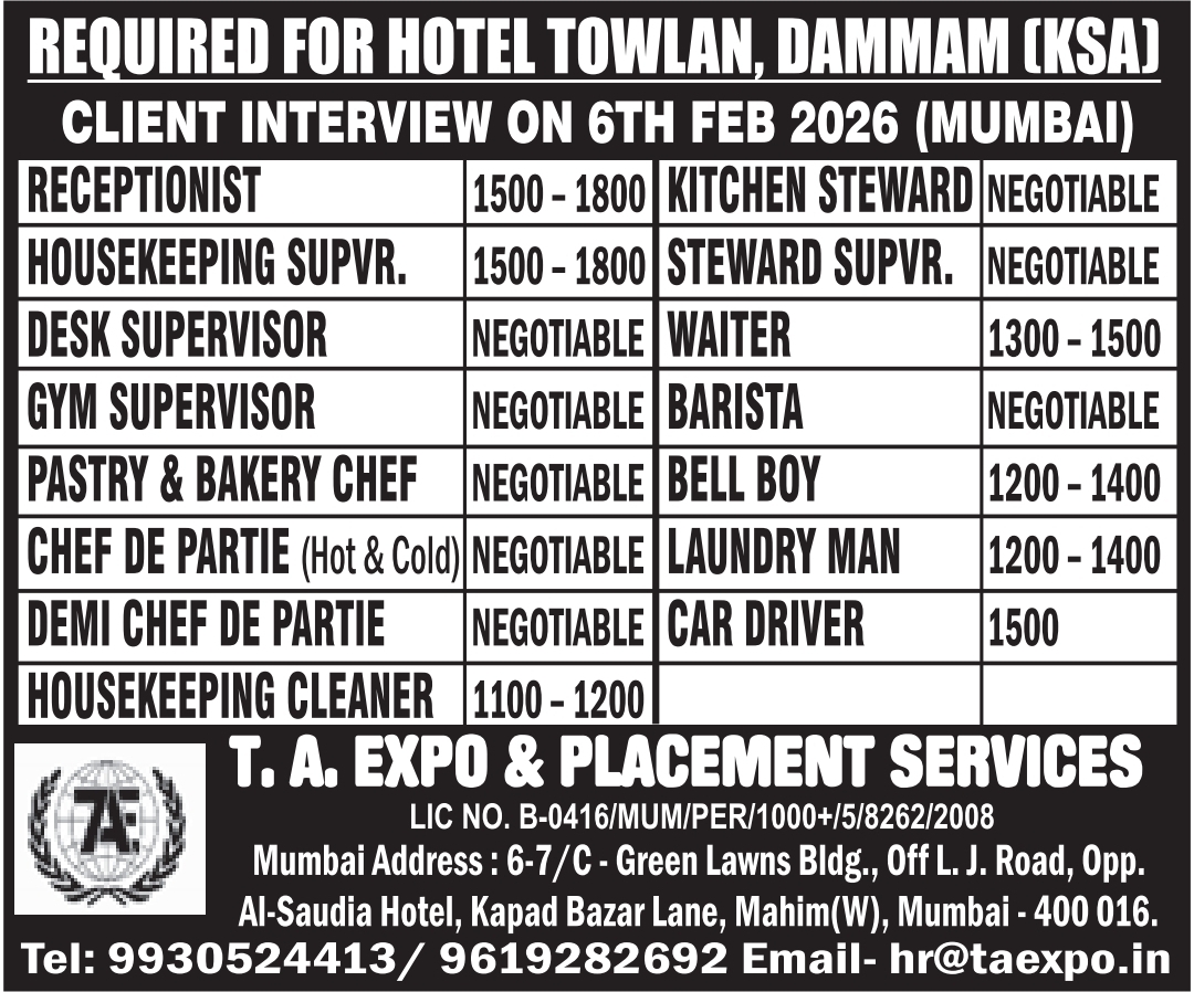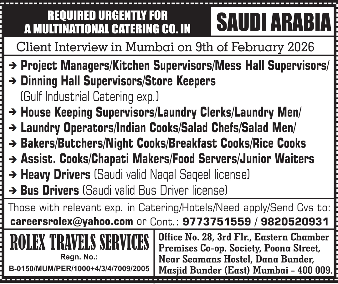 This is a completely Free Recruitment drive, meaning candidates do not have to pay service charges. The company is offering competitive salaries along with full support for travel and living.