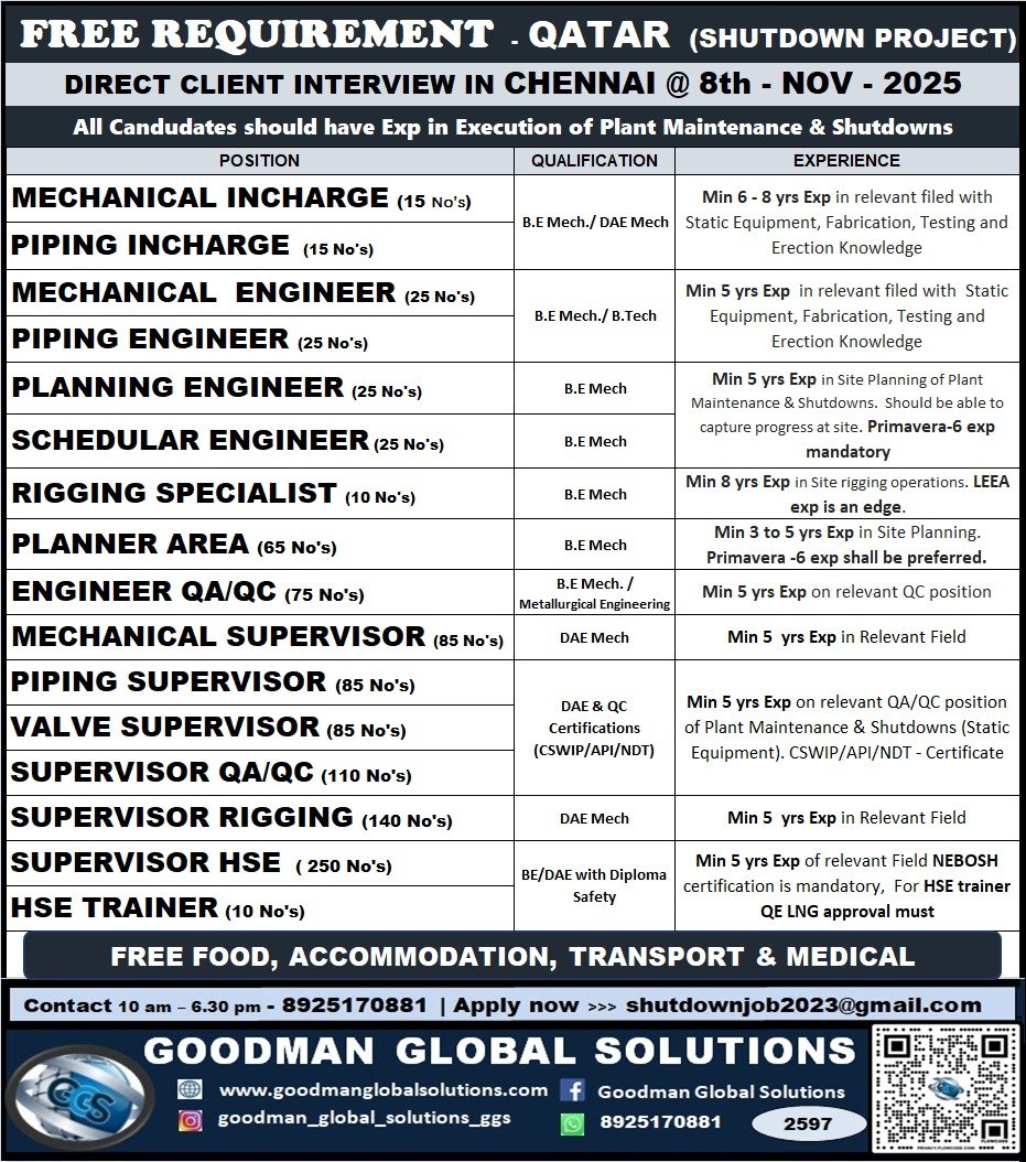 FREE REQUIREMENT – QATAR – SHUT DOWN PROJECT