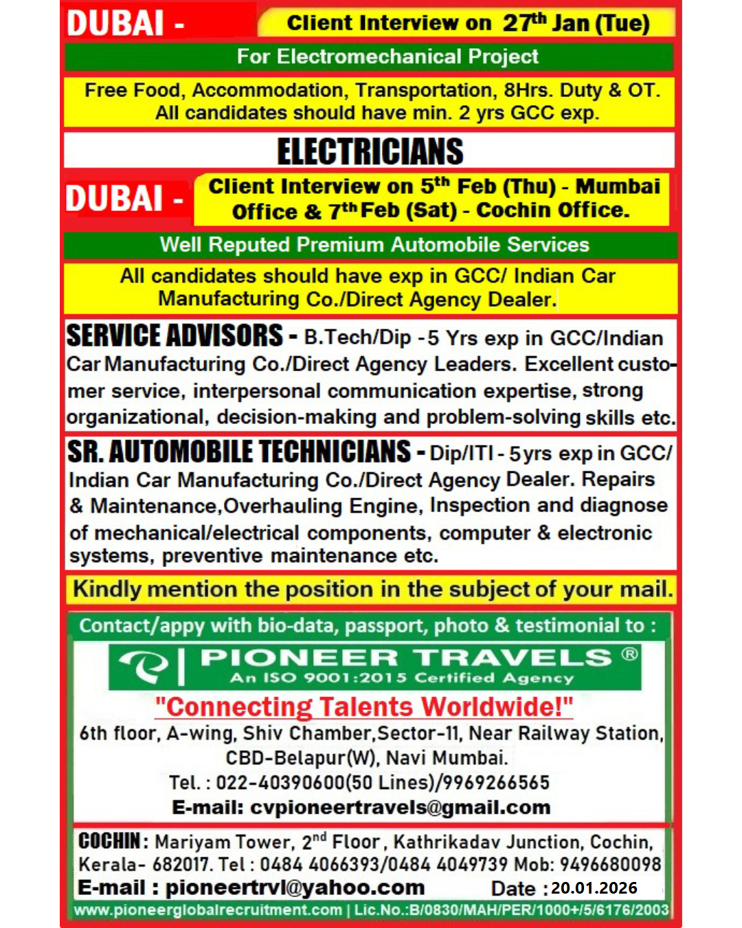 Exciting Job Opportunities for GINCO (MEP Division) – UAE | Interviews in Mumbai & Chennai