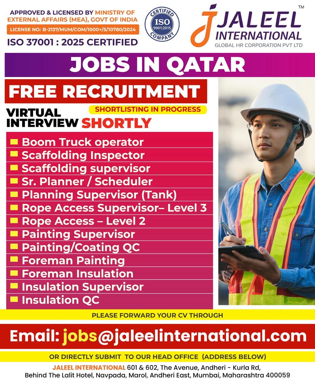 Qatar Job Vacancy – Urgent Hiring at H.R. International See Job Details & Apply Gulf Job List April 15, 2026 No Comments