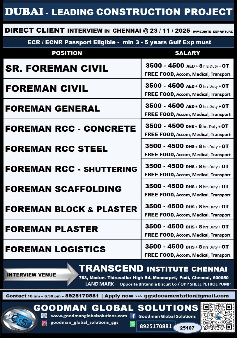 DUBAI – LEADING CONSTRUCTION PROJECT DIRECT CLIENT INTERVIEW IN CHENNAI @ 23 NOV 2025
