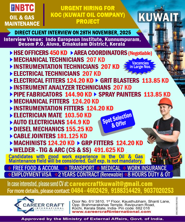 Kuwait KOC Maintenance Project Jobs – Long Term Vacancies With Free Food & Accommodation | Falcon HR