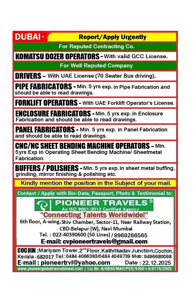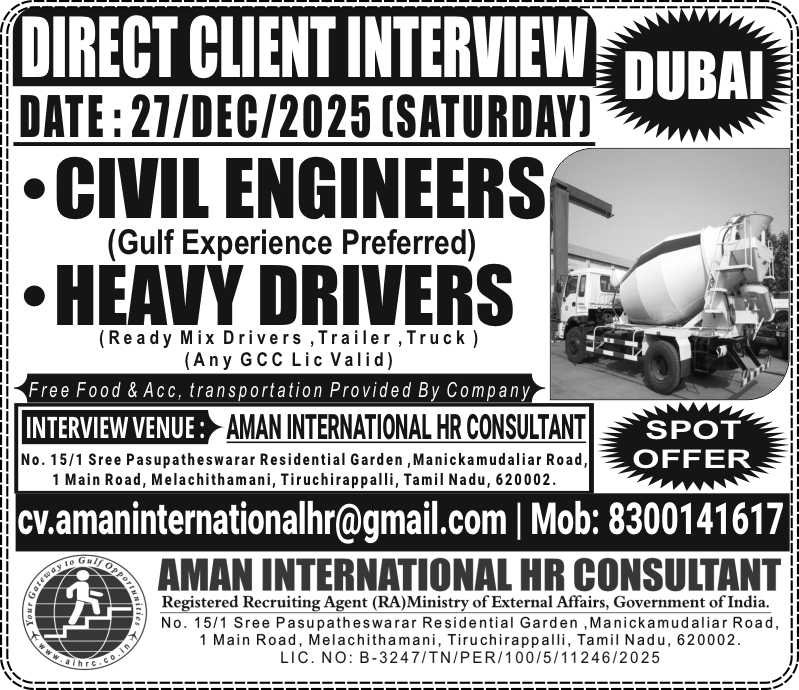 UAE VACANCIES – READY MIX CONCRETE COMPANY (DUBAI) – DIRECT CLIENT INTERVIEW AT OUR OFFICE