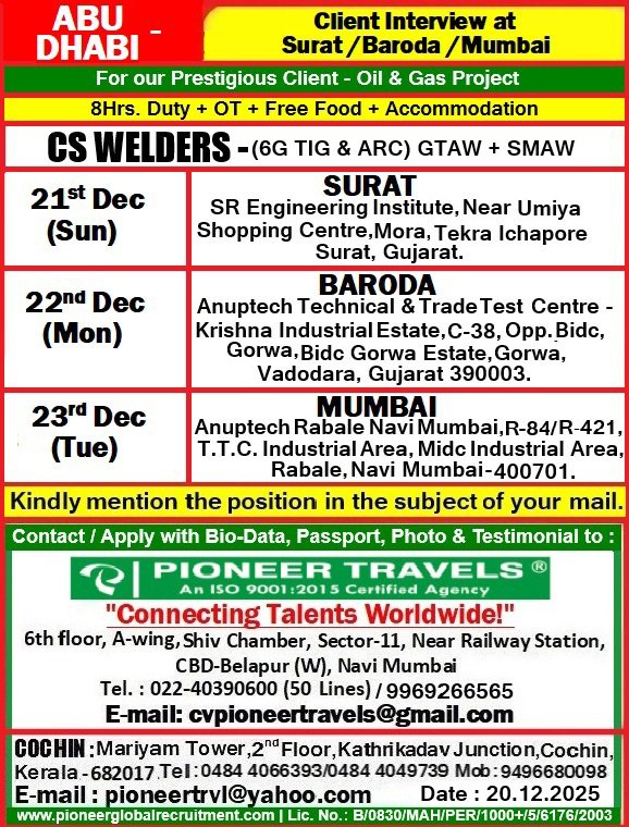 Turkey Sintek and Dubai Galadari Engineering Jobs: Client Interview in Mumbai