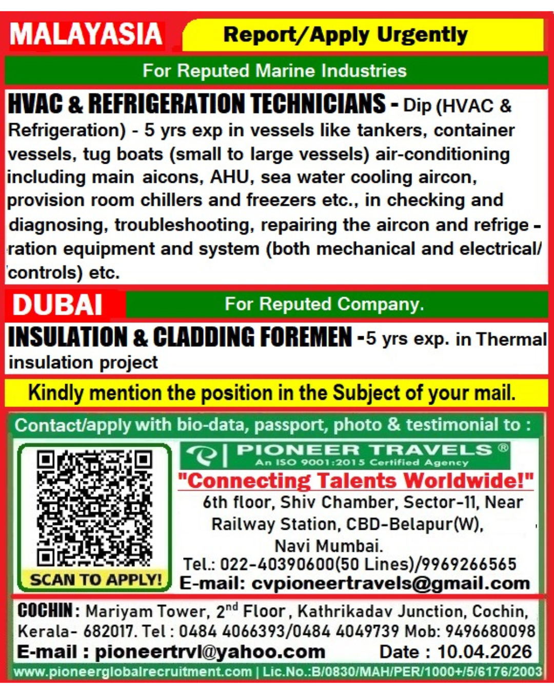 Send your CV to Kuwaitggc7@gmail.com or call +919820783766 / 9930984788 / 8850934726 for Mumbai coordination. Only shortlisted candidates will be called for the client interview.