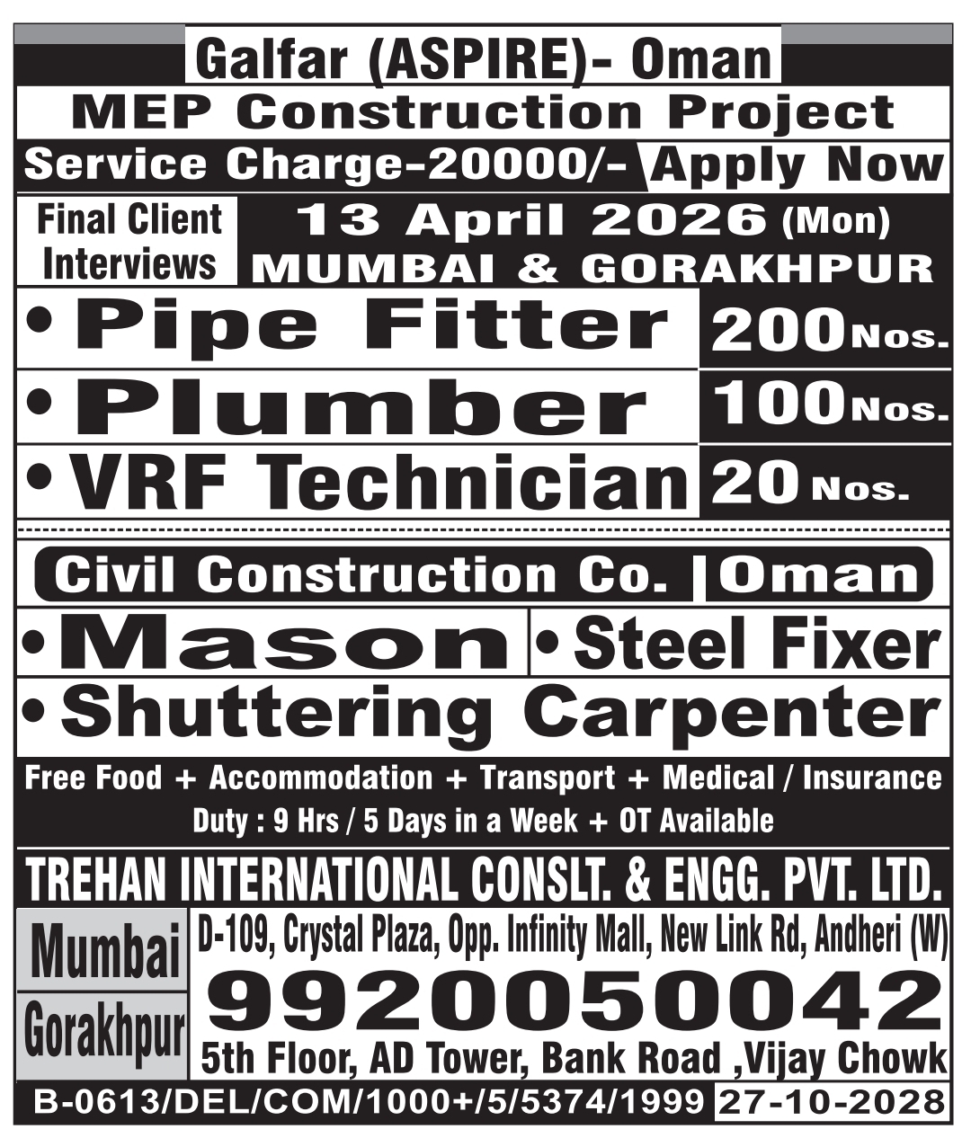 Send your CV to Kuwaitggc7@gmail.com or call +919820783766 / 9930984788 / 8850934726 for Mumbai coordination. Only shortlisted candidates will be called for the client interview.