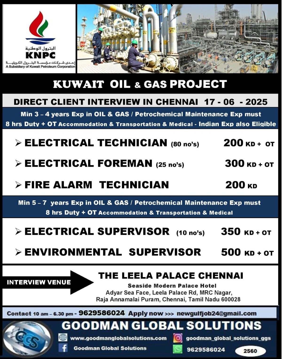 KUWAIT OIL & GAS PROJECT | DIRECT CLIENT INTERVIEW IN CHENNAI 17/6/2025