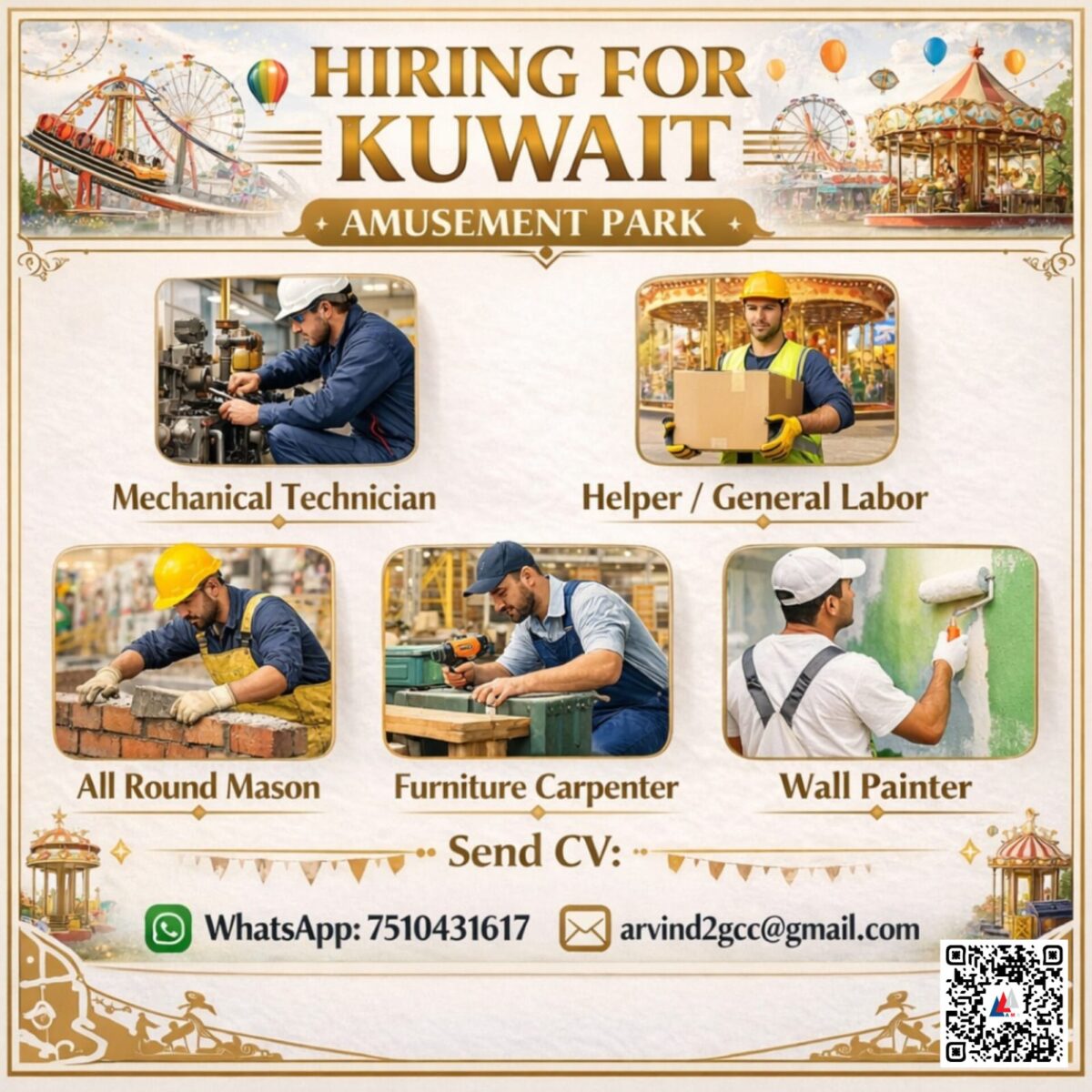 Kuwait Requirements – Mechanical Technician, Helper, Mason, carpenter, Wall Painter