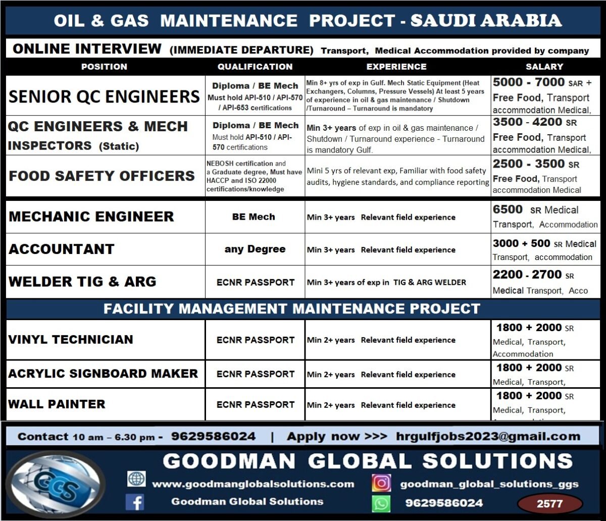 ONLINE INTERVIEW (IMMEDIATE DEPARTURE) Transport, Medical Accommodation provided by company