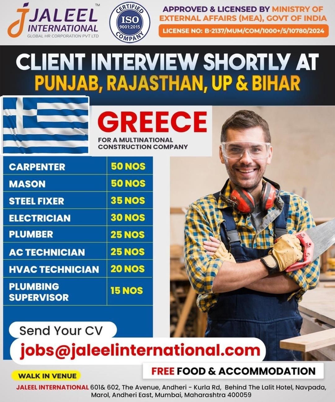 • Senior Carpenter / Assistant Carpenter (15 openings)