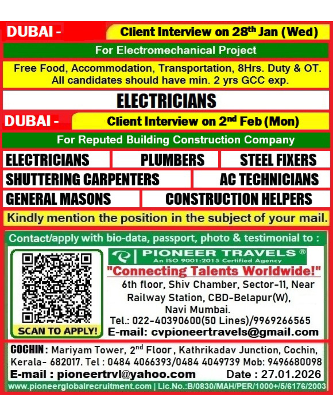 To secure one of these positions, candidates must attend the client interview in Kochi.