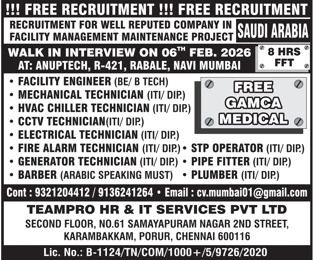 Career Craft International (Approved by Ministry of External Affairs, Govt. of India) is managing this recruitment.