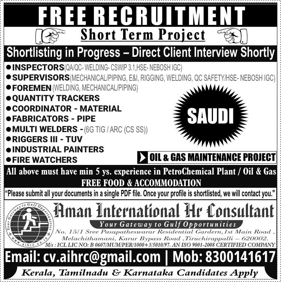 Shutdown Project Gulf Jobs – Saudi Arabia