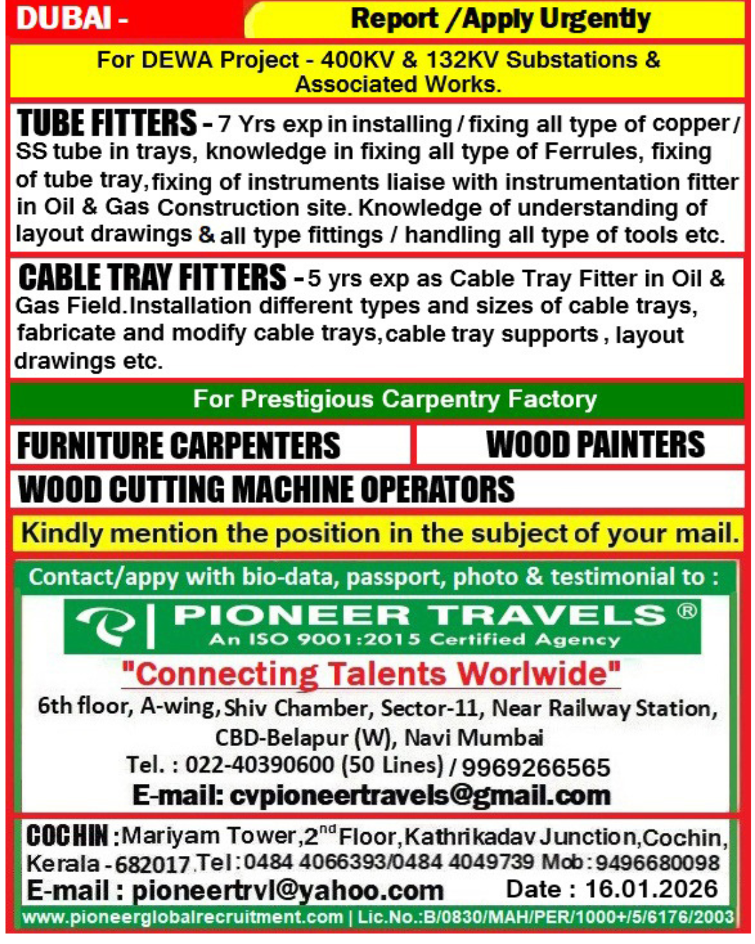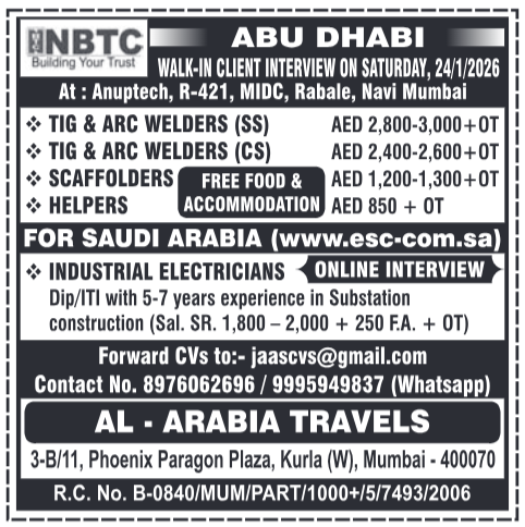WANTED FOR A LEADING MANUFACTURING COMPANY – POWERPLANT / SUBSTATION DIVISION (KUWAIT) DIRECT CLIENT INTERVIEW ON 21 JAN – CHENNAI