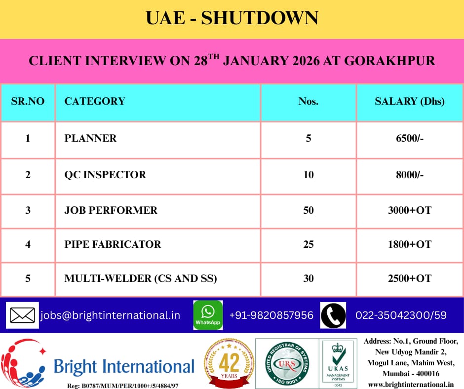 UAE Shutdown Jobs: Urgent Hiring for Planners and QC Inspectors with High Salary