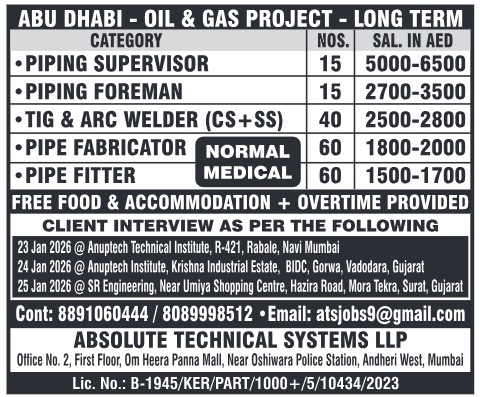 Abu Dhabi Oil and Gas Jobs: Urgent Long Term Project Hiring with High Salary
