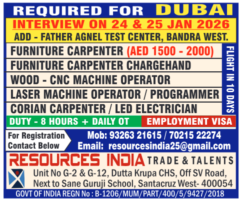 WANTED FOR A LEADING INTERIOR DESIGNING COMPANY (DUBAI) DIRECT CLIENT INTERVIEW ON 22 JAN – TRICHY