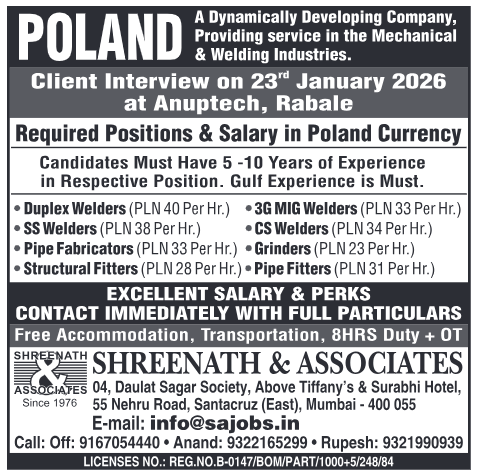 Poland Jobs for Indians: Urgent Hiring for Welders and Fitters with High Salary