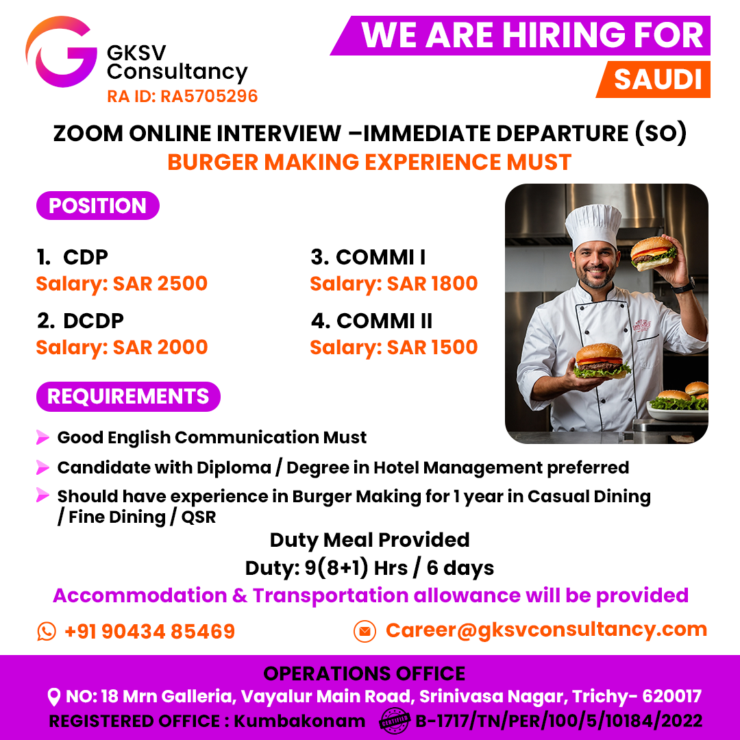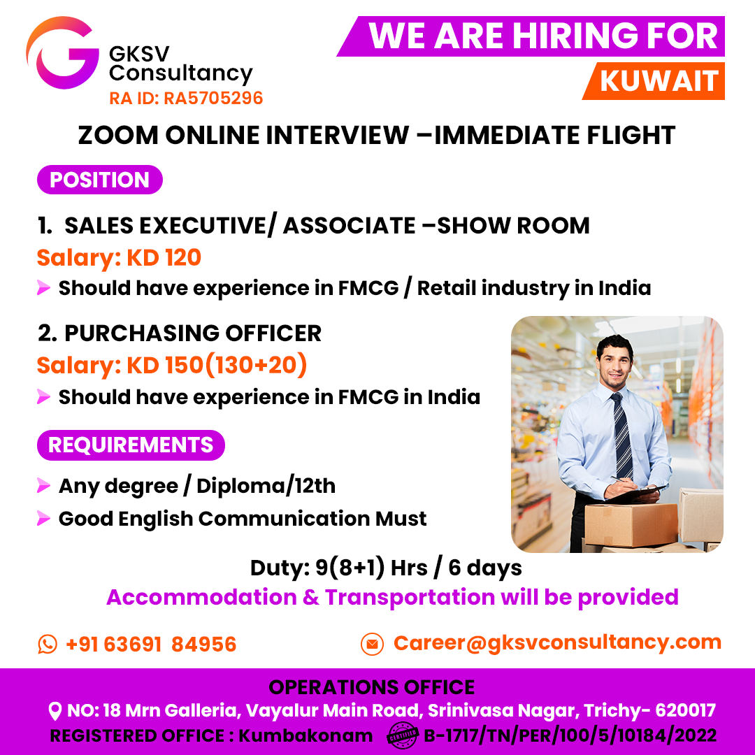WANTED FOR A LEADING FMCG / COLD STORAGE COMPANY – CLIENT INTERVIEW ON 29th NOVEMBER – TRICHY