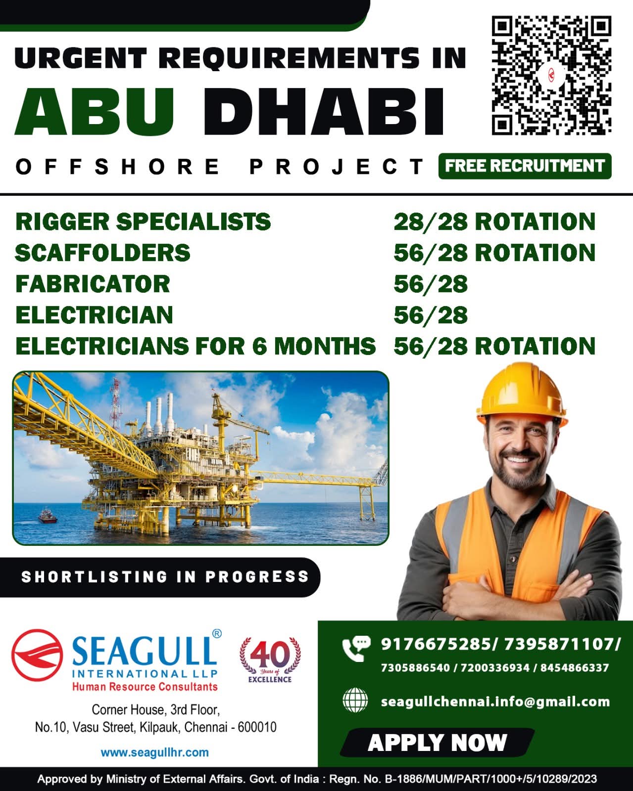 Offshore Jobs in Abu Dhabi: Urgent Free Recruitment for Riggers and Electricians