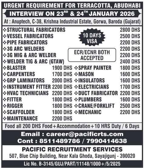 Abu Dhabi Job Vacancy: Urgent Hiring for Terracotta Project with High Salary