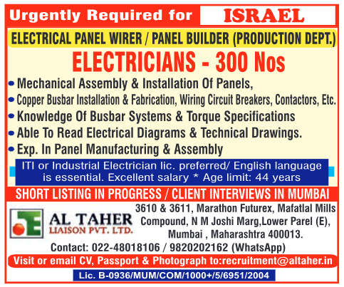 Israel Jobs for Electricians: Urgent Hiring for Panel Builders (300 Vacancies)