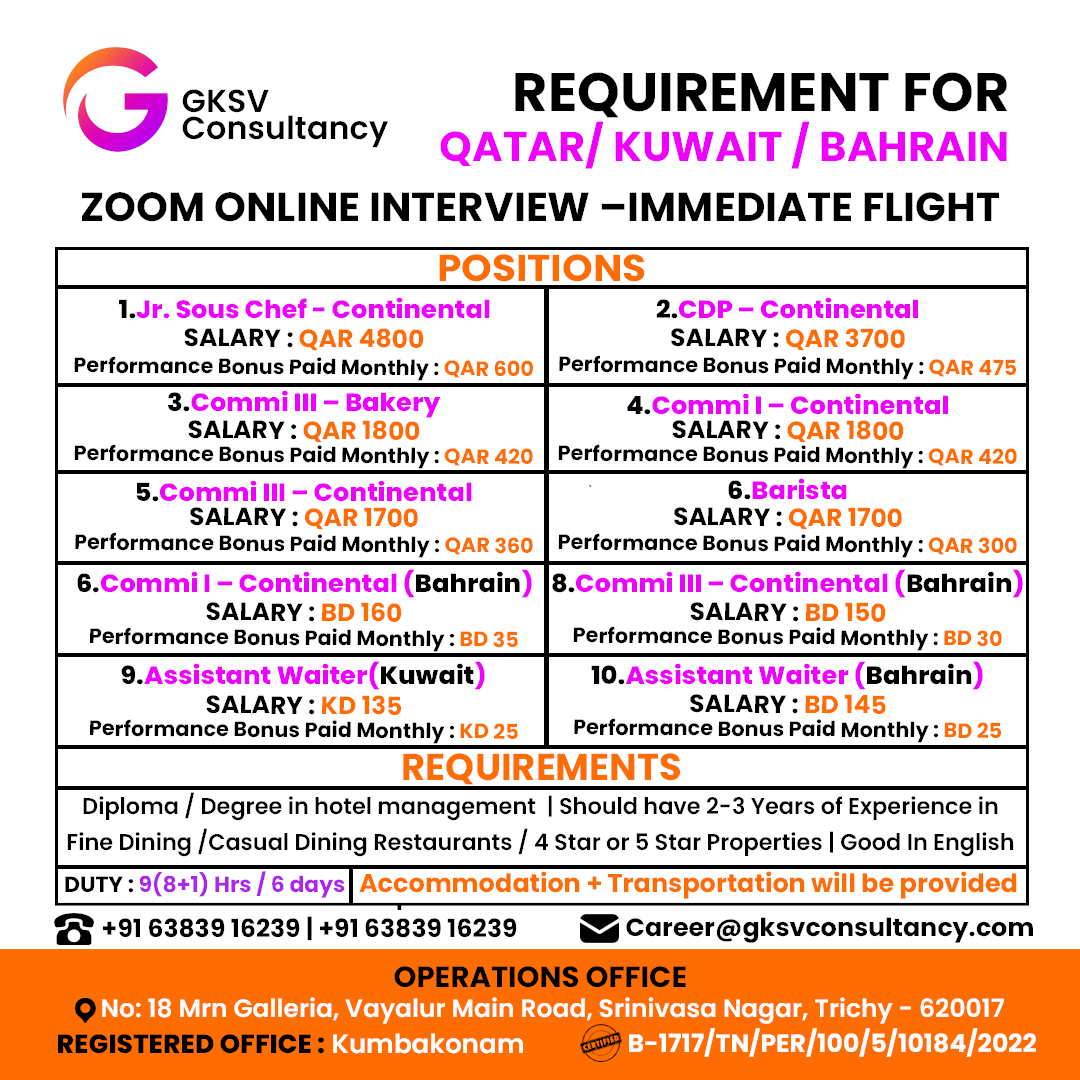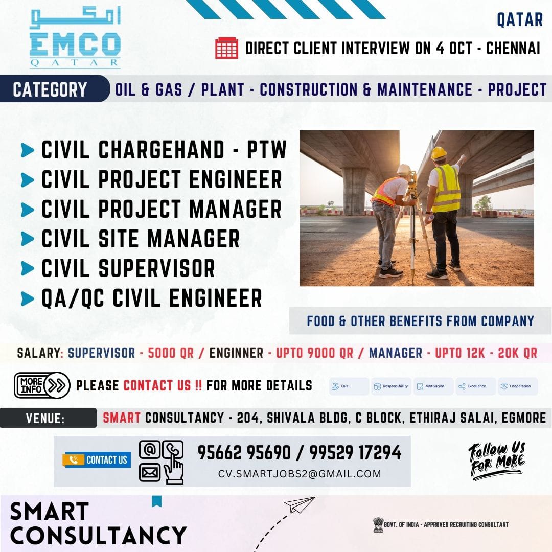 WANTED FOR A LEADING OIL & GAS PLANT MAINTENANCE COMPANY – QATAR / DIRECT CLIENT INTERVIEW ON 4TH OCTOBER – CHENNAI