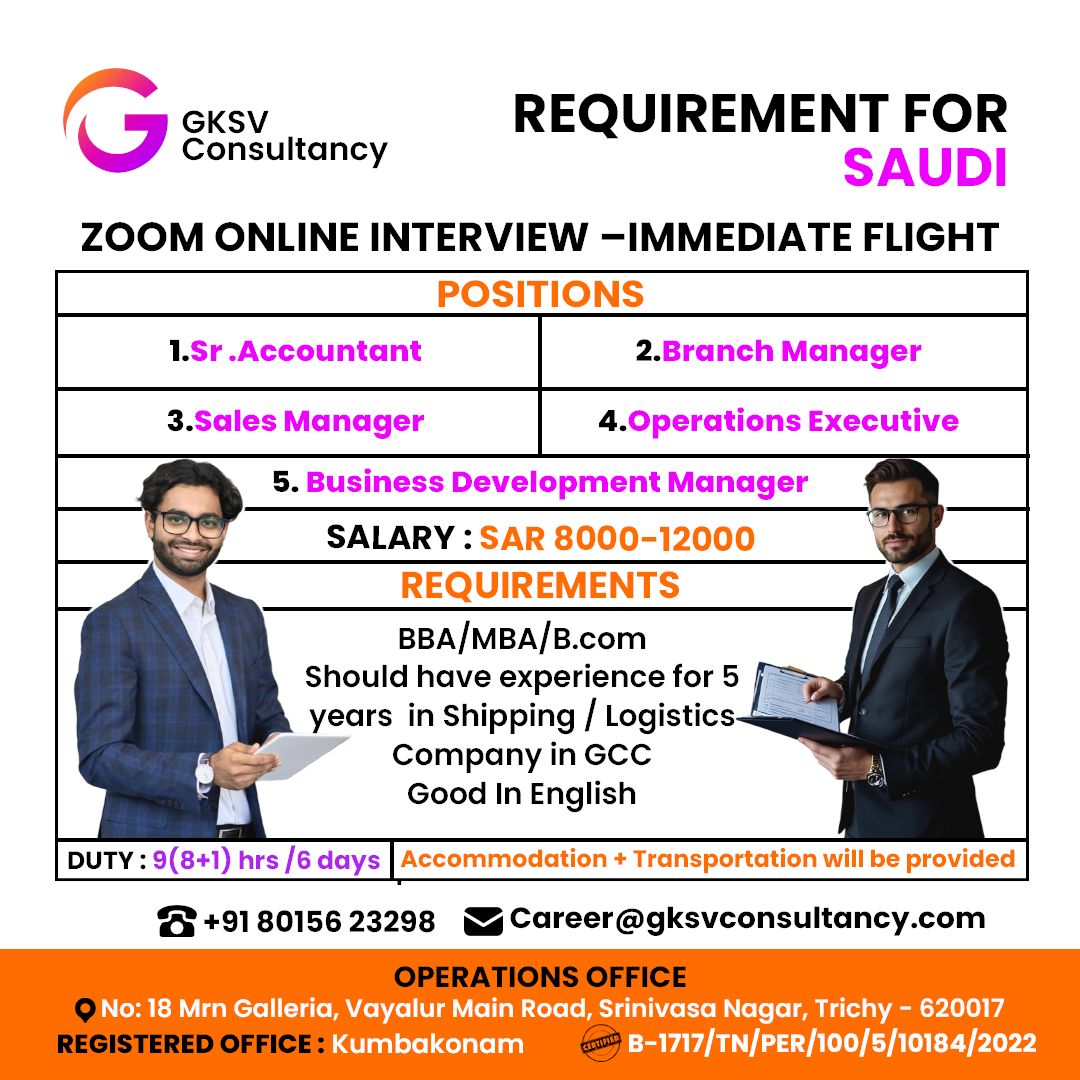 WANTED FOR A LEADING WATER TREATMENT PLANT COMPANY – QATAR / DIRECT CLIENT INTERVIEW ON 5TH OCTOBER – TRICHY