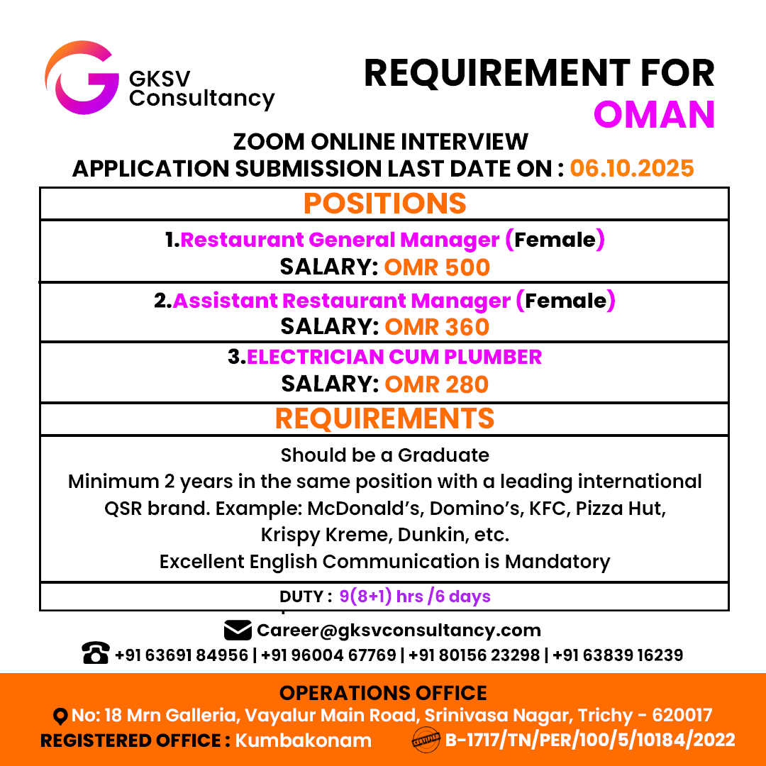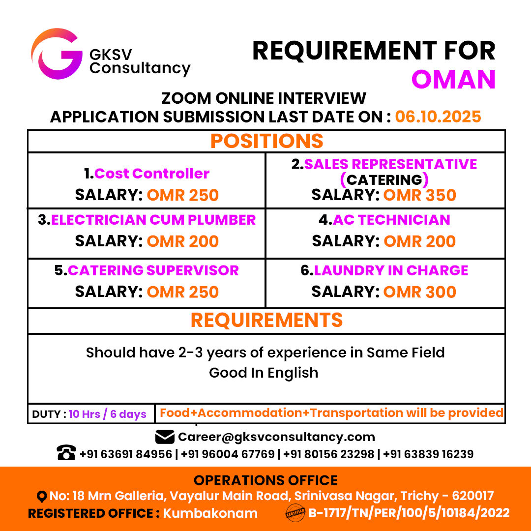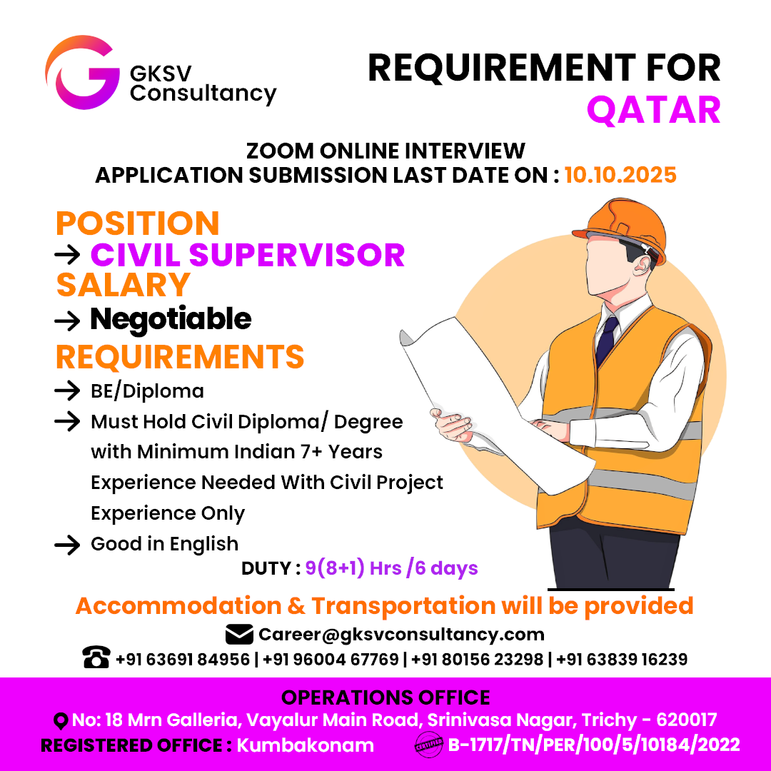 WANTED FOR A LEADING OIL & GAS – PIPELINE CONSTRUCTION COMPANY – OMAN / DIRECT CLIENT INTERVIEW ON 29 SEPTEMBER – CHENNAI
