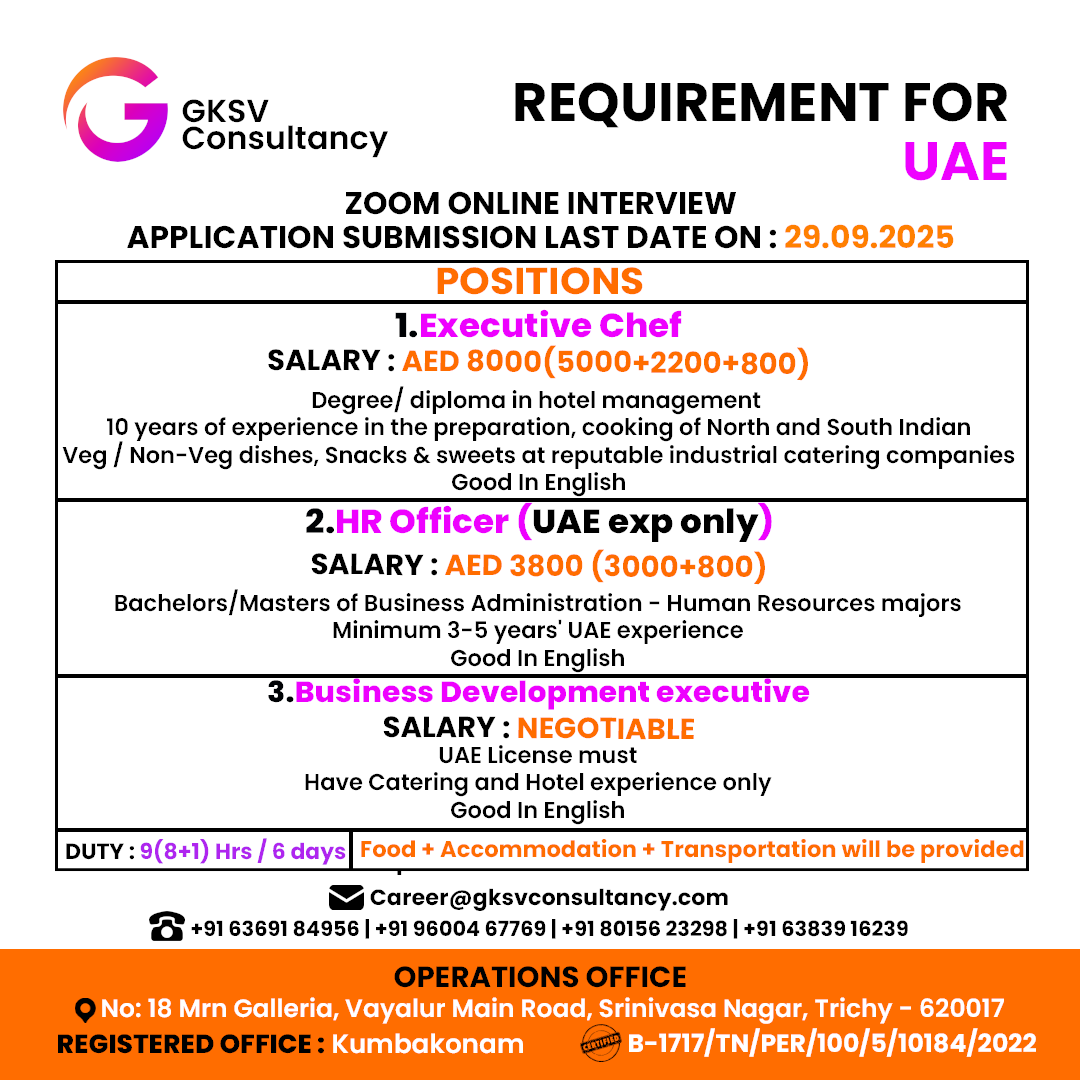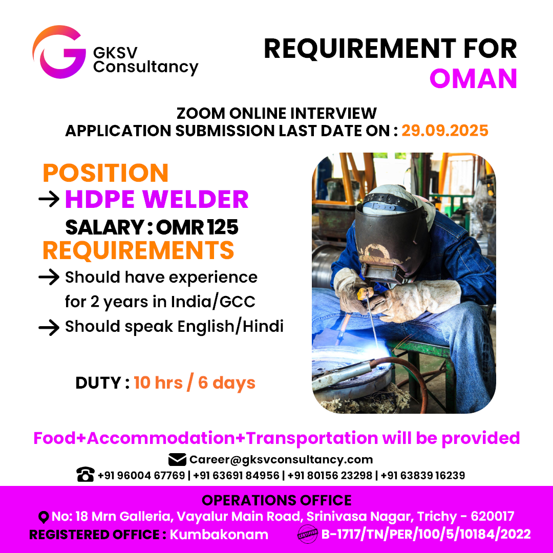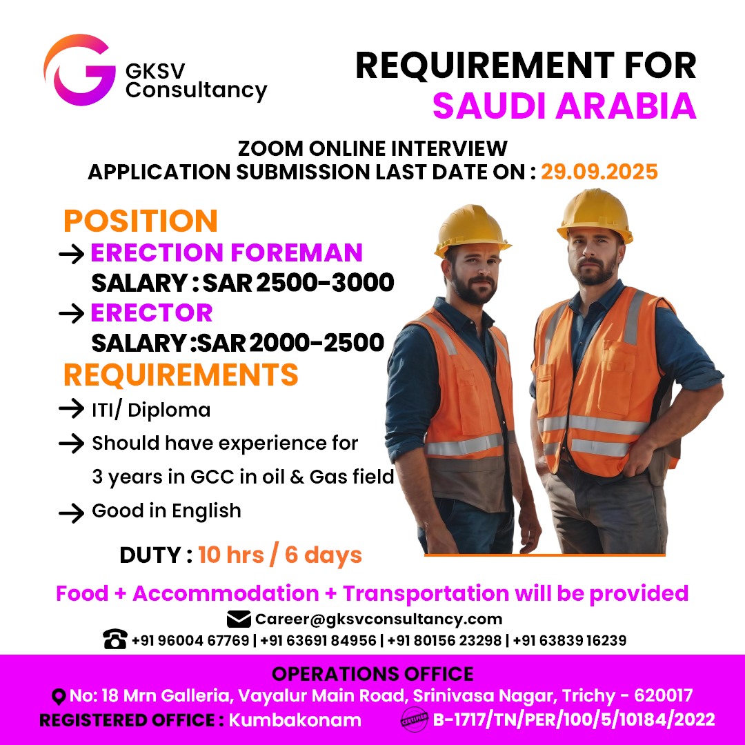 FREE REQUIREMENT – UAE (LONG TERM PROJECT) DIRECT CLIENT INTERVIEW IN CHENNAI 27-09-2025