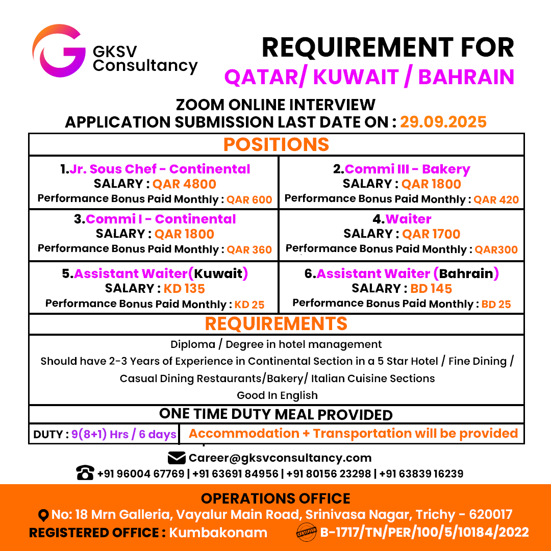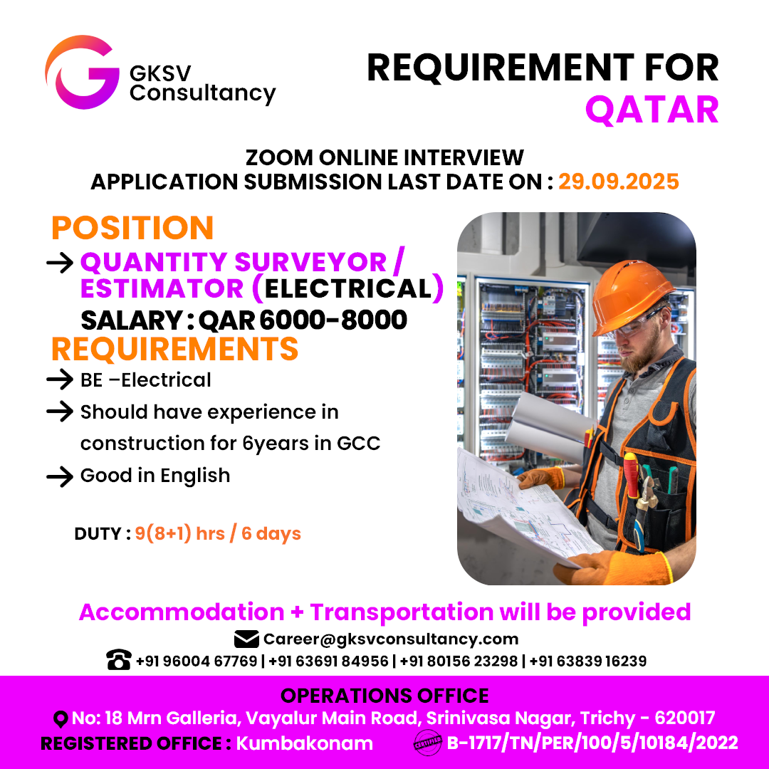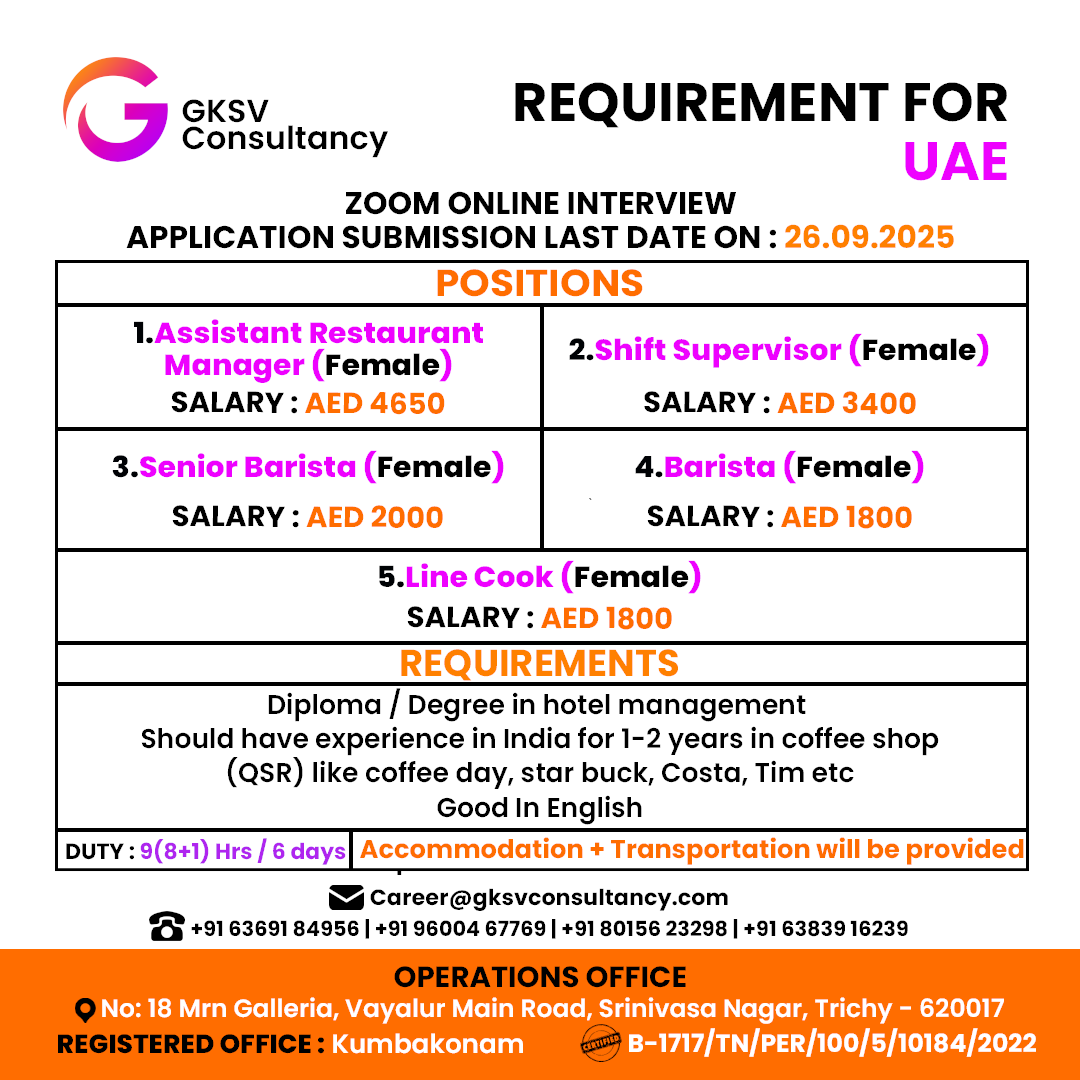 FREE REQUIREMENT – UAE (LONG TERM PROJECT) DIRECT CLIENT INTERVIEW IN CHENNAI 27-09-2025