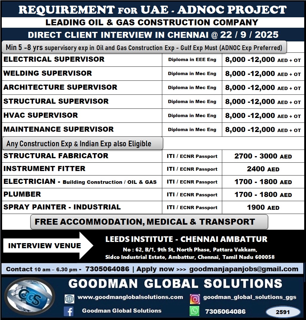 LEADING OIL AND GAS CONSTRUCTION COMPANY DIRECT CLIENT INTERVIEW IN CHENNAI @22-09-2025