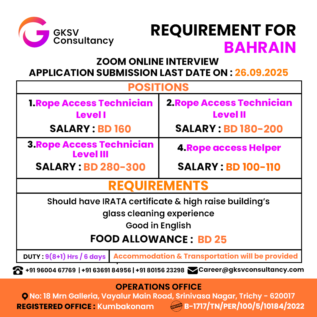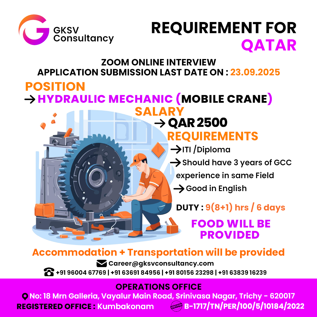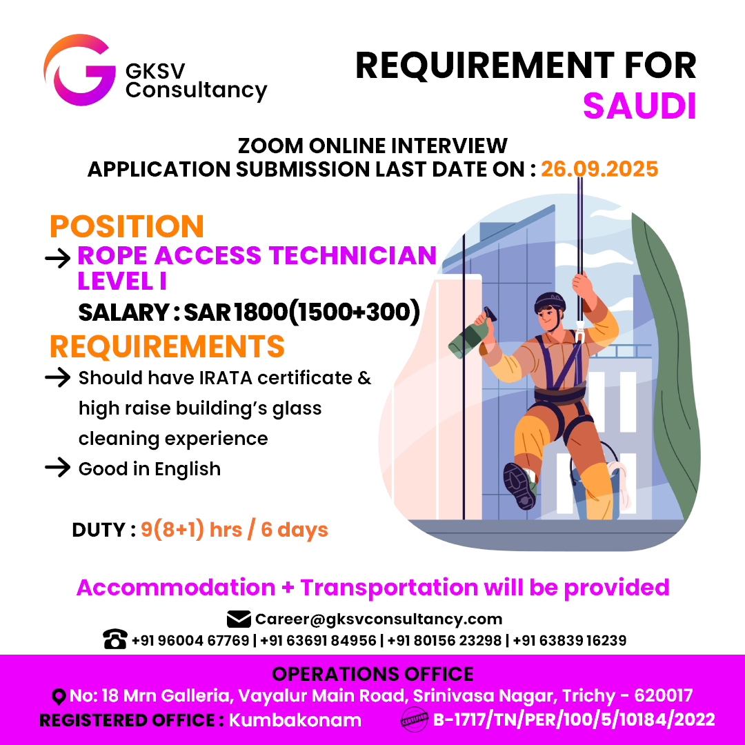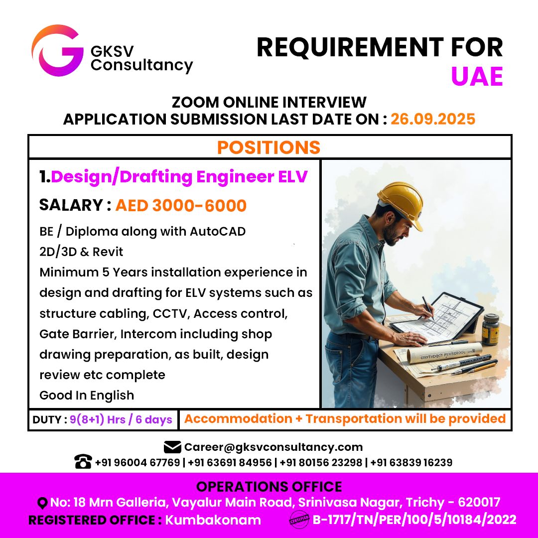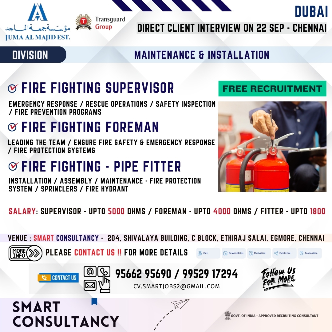 WANTED FOR A LEADING INSTALLATION & MAINTENANCE COMPANY – DUBAI | DIRECT CLIENT INTERVIEW ON 22nd SEPTEMBER – CHENNAI