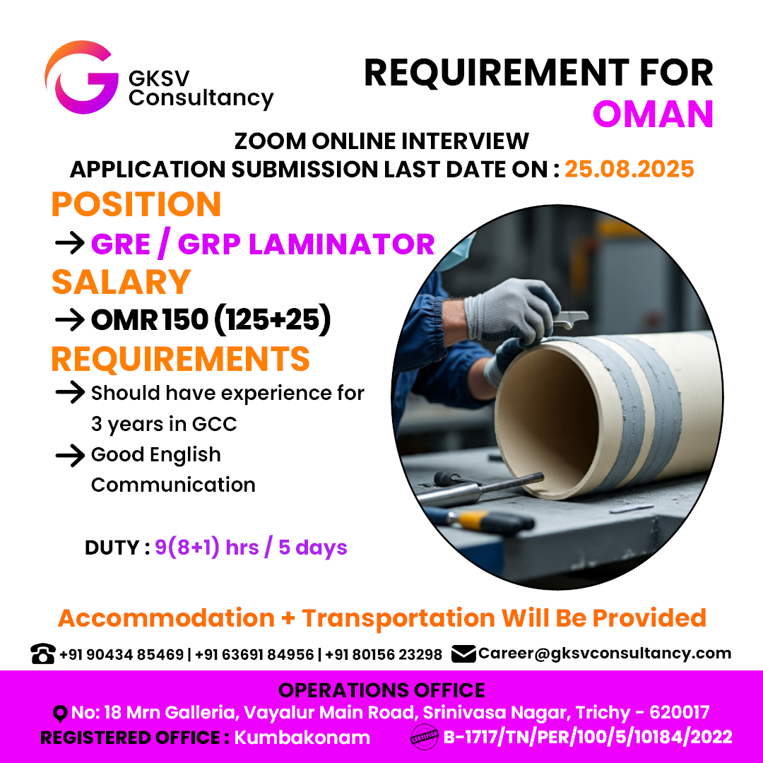 FREE REQUIREMENT – UAE ( 4 – 6 month SHUTDOWN PROJECT) SAUDI ARABIA DIRECT CLIENT INTERVIEW IN CHENNAI @ 19 AUG 2025