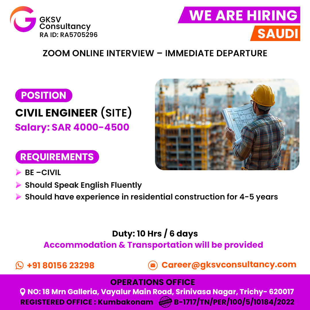 SAUDI ARABIA – OIL & GAS PROJECT ( LONG TERM ) ONLINE INTERVIEW – 3rd Week December
