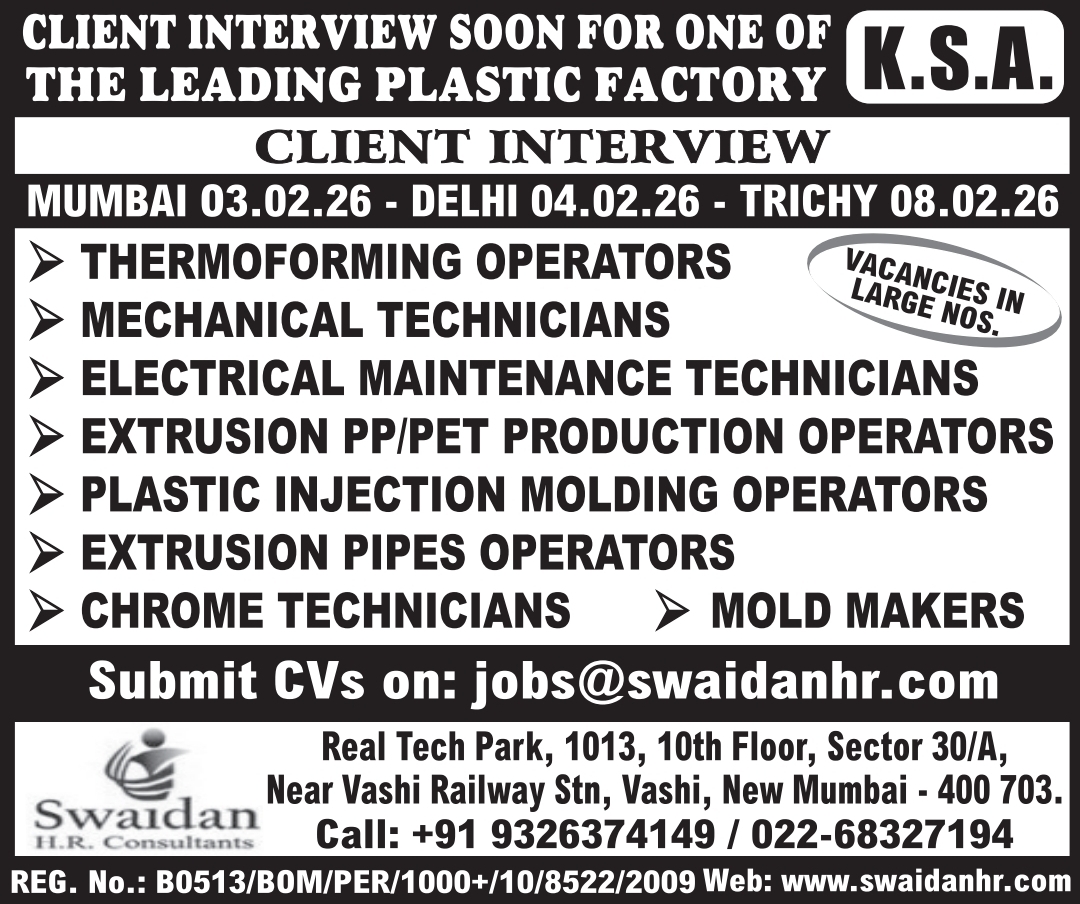 Plastic Factory Jobs KSA: Urgent Hiring for Leading Manufacturing Company See Job Details & Apply Gulf Job List January 31, 2026 No Comments