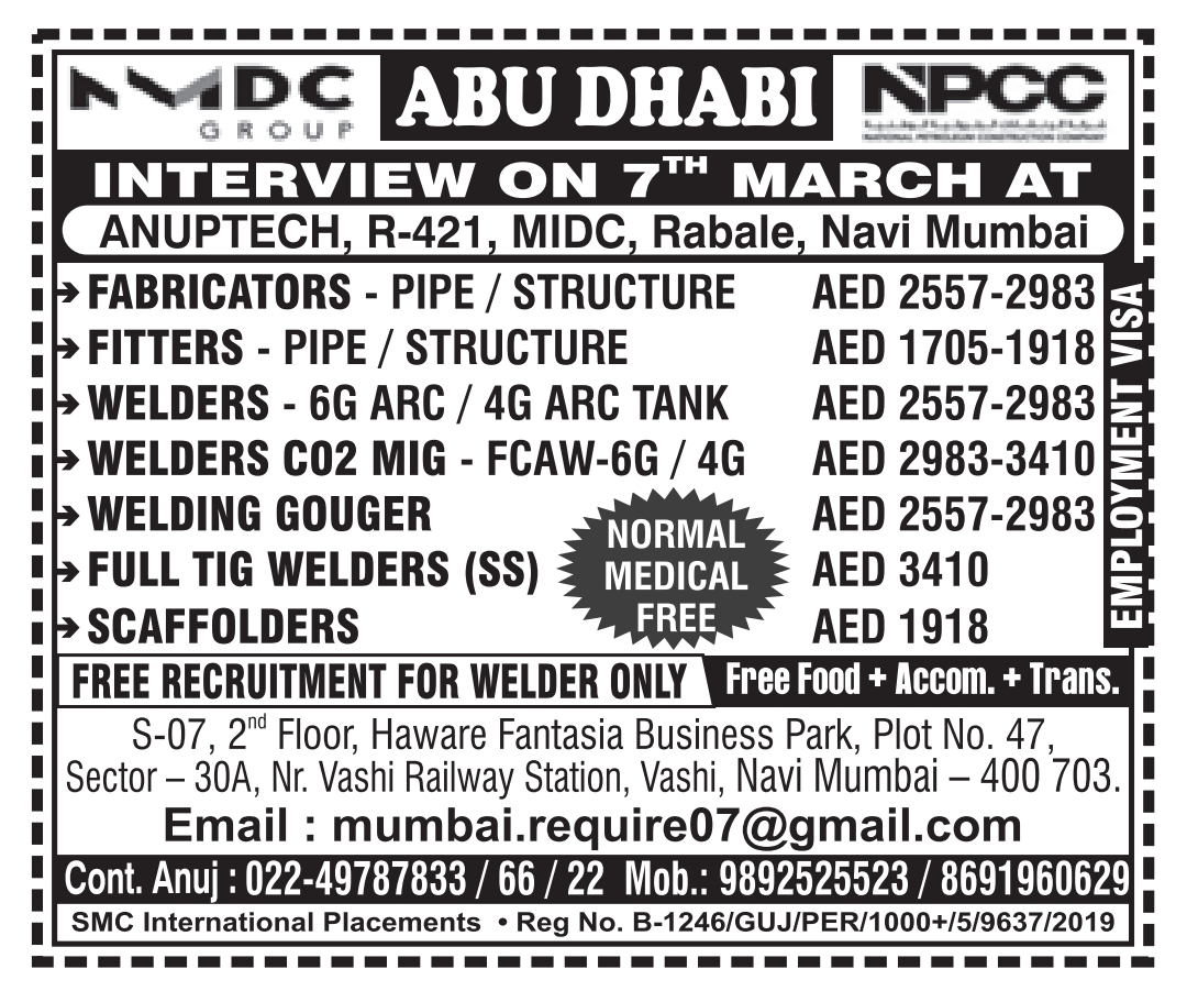 Abu Dhabi Job Vacancy – Urgent Hiring Fabricators & Welders See Job Details & Apply Gulf Job List March 4, 2026 No Comments