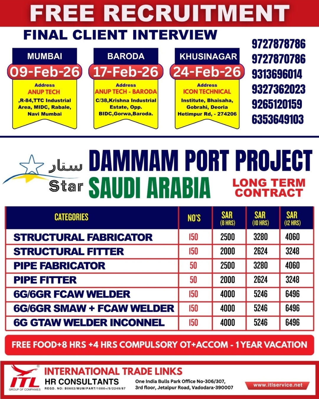 Free Recruitment Dammam Port Project: Massive Hiring for Saudi Arabia by ITL