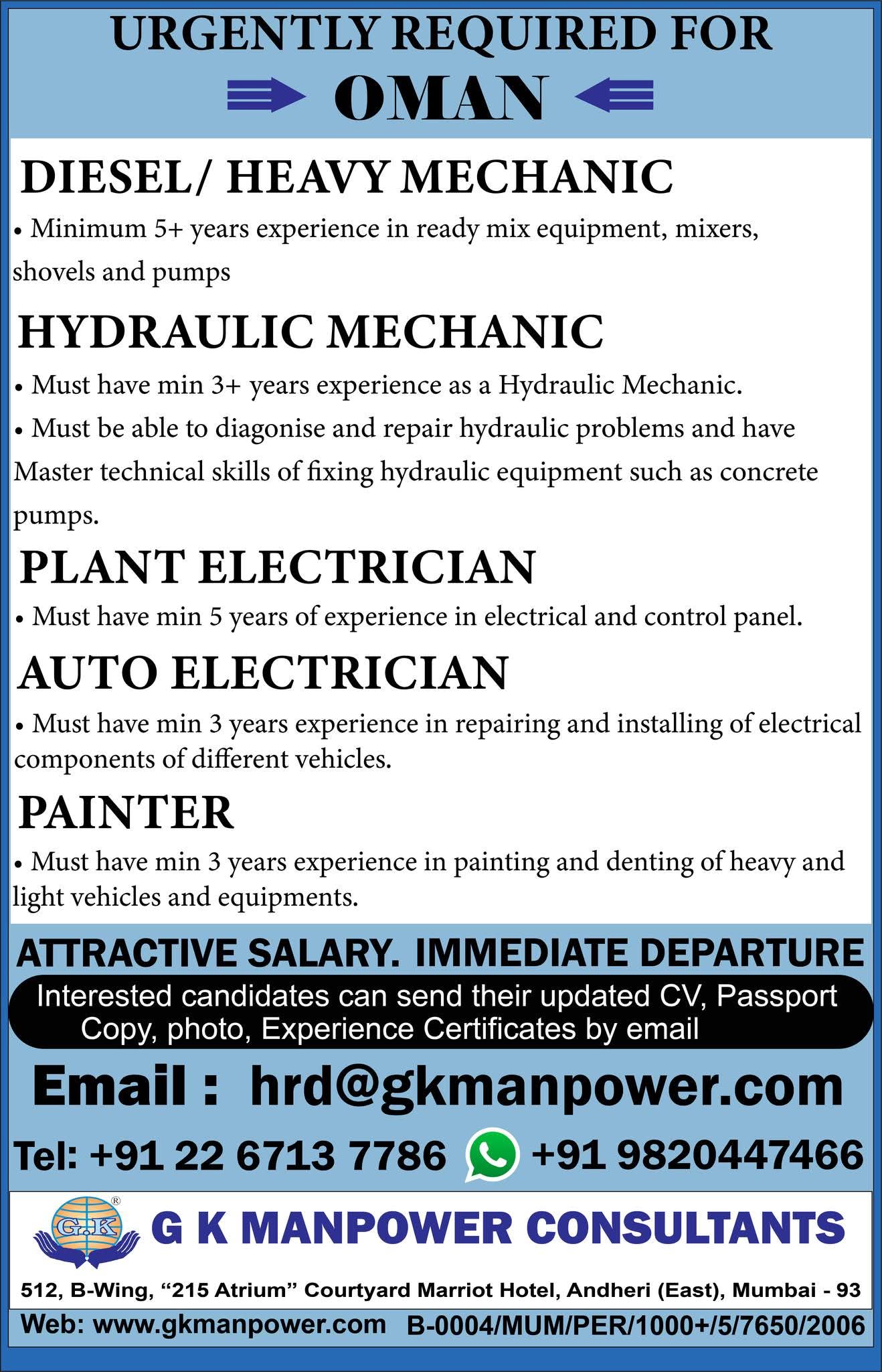 • Mechanics – Overhauling Specialist: 2300-3000 AED + OT