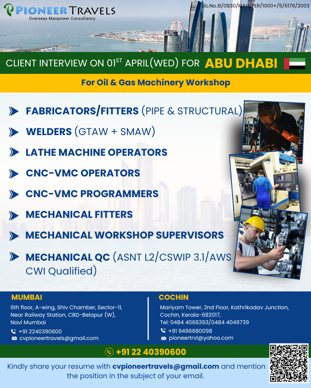 UAE Job Vacancy for Skilled Welders, Plumbers, and Electricians