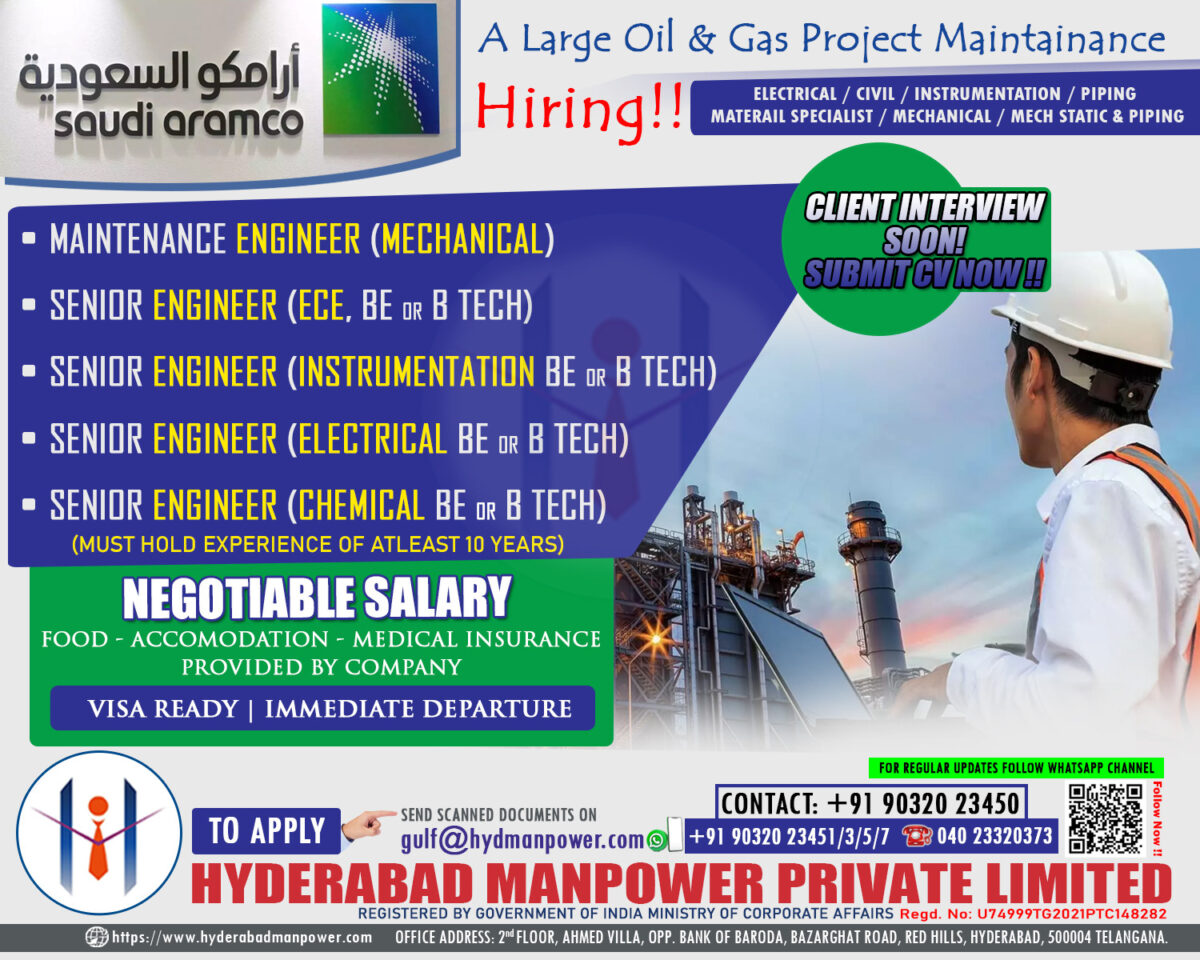 Urgen Hiring for A Leading Oil & Gas Maintenance project – Saudi Arabia